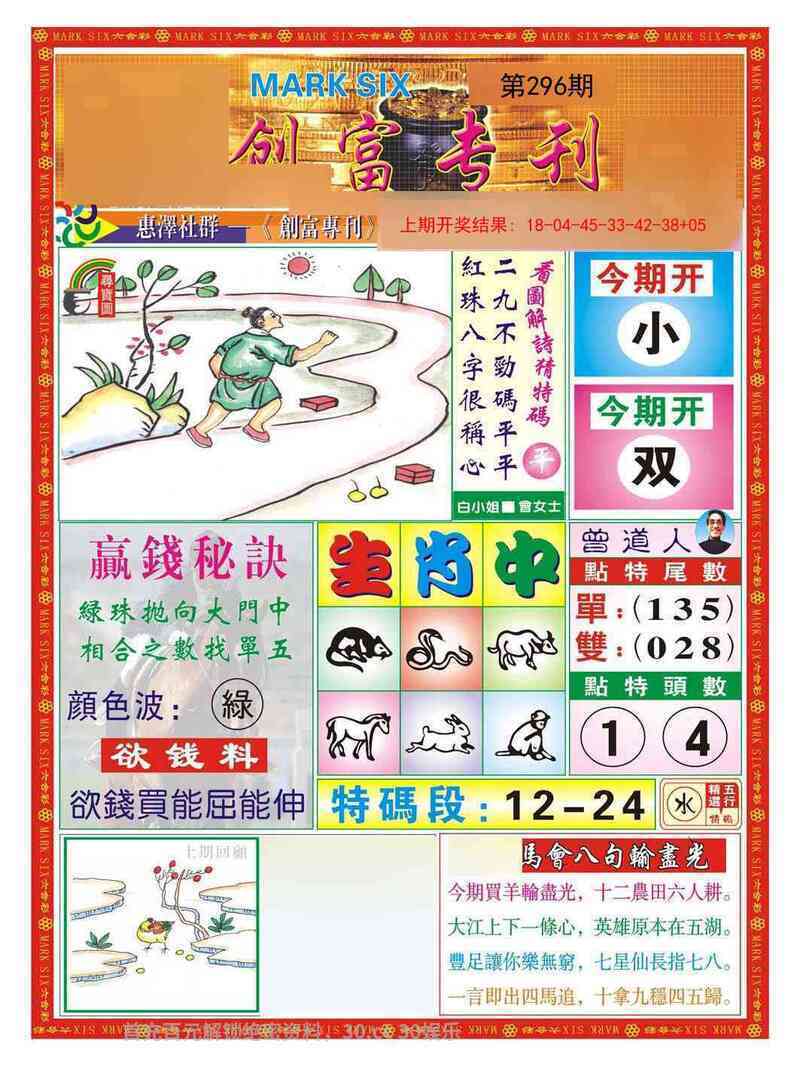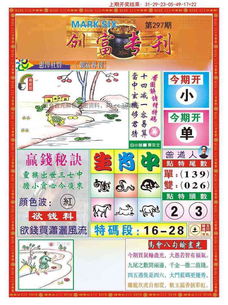 298期:正版创富网:若砖大数则看好,发达全看红波双