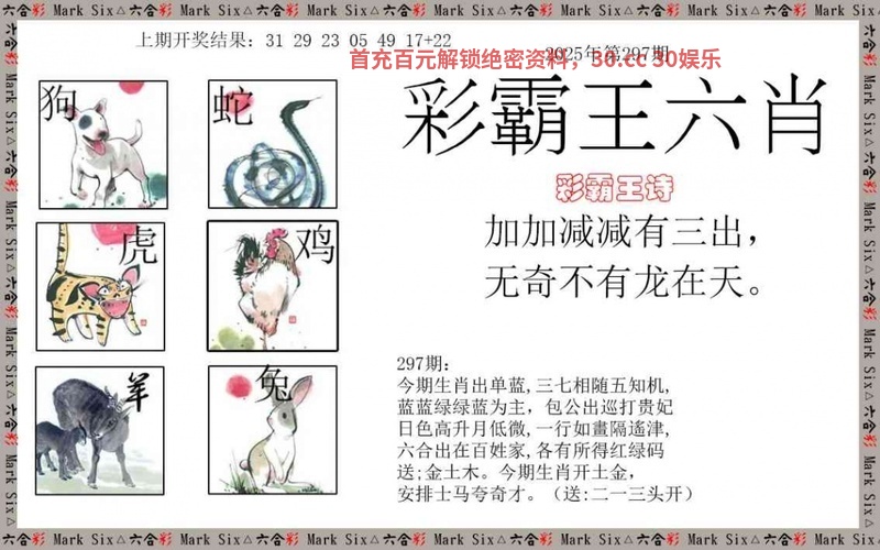 297期:正版创富网:加加减减有三出,无奇不有龙在天